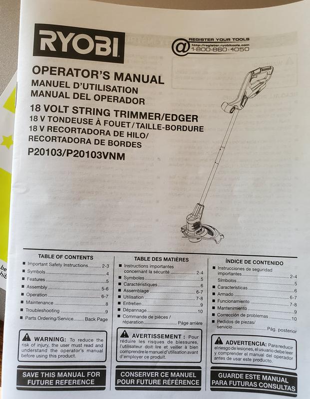 Ryobi P2030 Cordless String Trimmers Download Instruction Manual Pdf